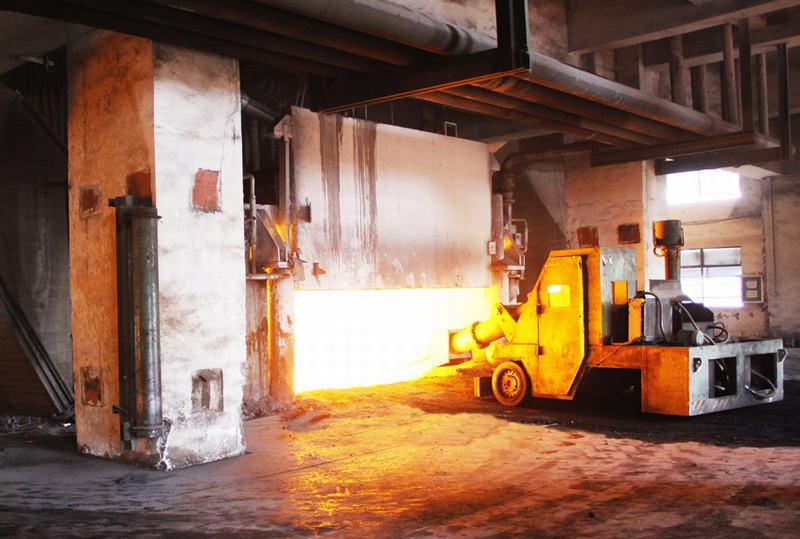 搗爐機(jī)正在對錳硅礦熱爐內(nèi)的料面進(jìn)行維護(hù)作業(yè)